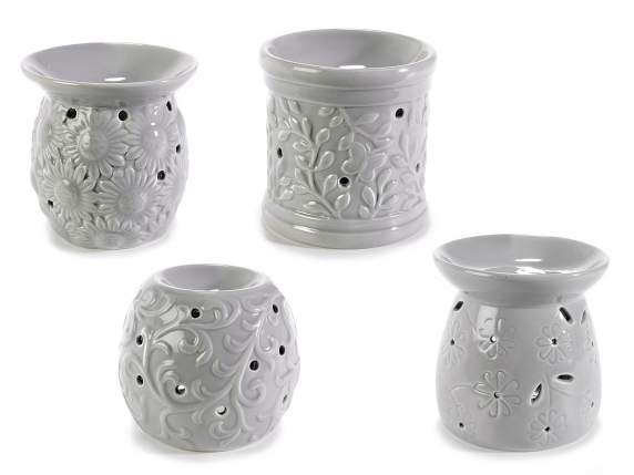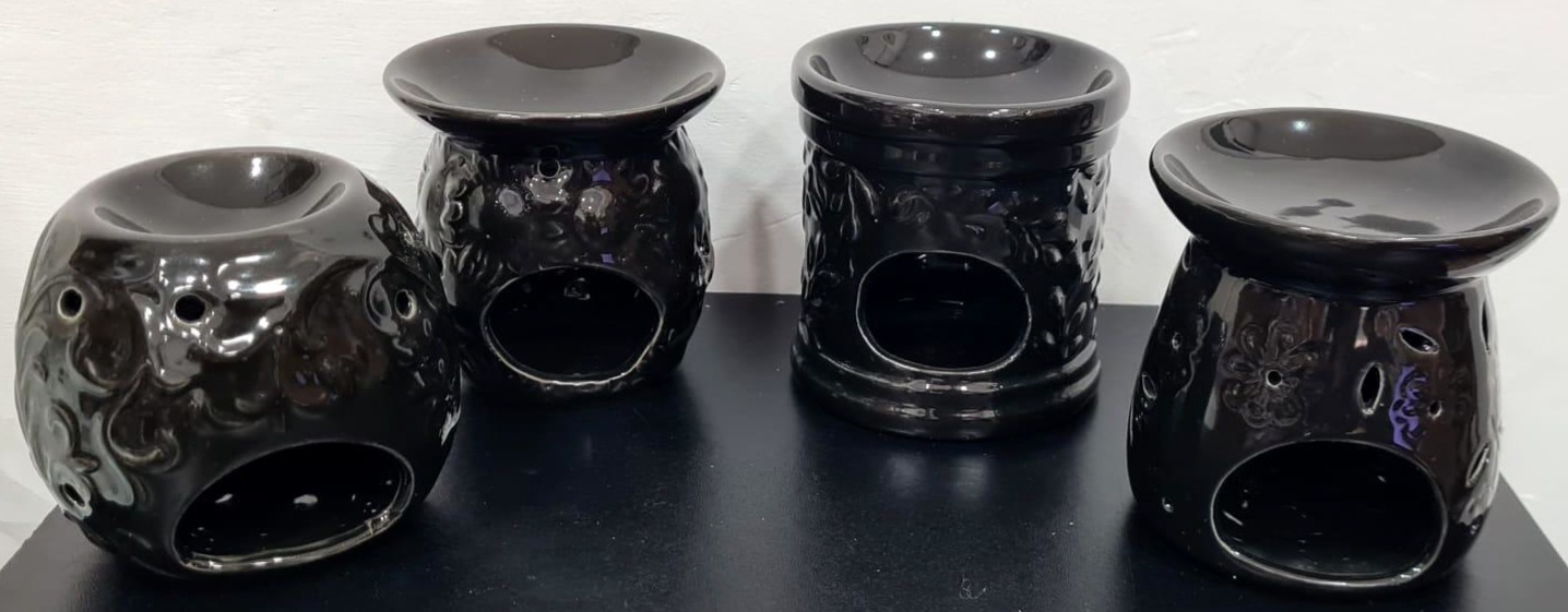BRUCIA ESSENZE IN CERAMICA NERA CON DECORI IN RILIEVO
