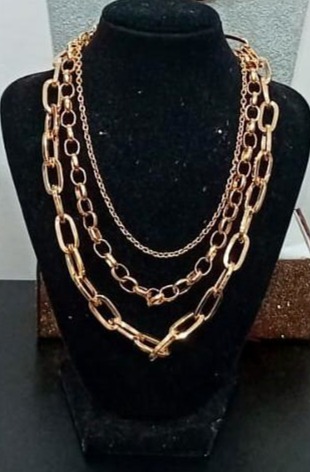 COLLANA CON CATENA (ORO,ARGENTO,BRONZO) IN PROVETTA DI VETRO. CHAINS