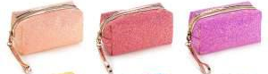 POCHETTE IN STOFFA CON TESSUTO BRILLANTINATO, ZIP E LACCETTO